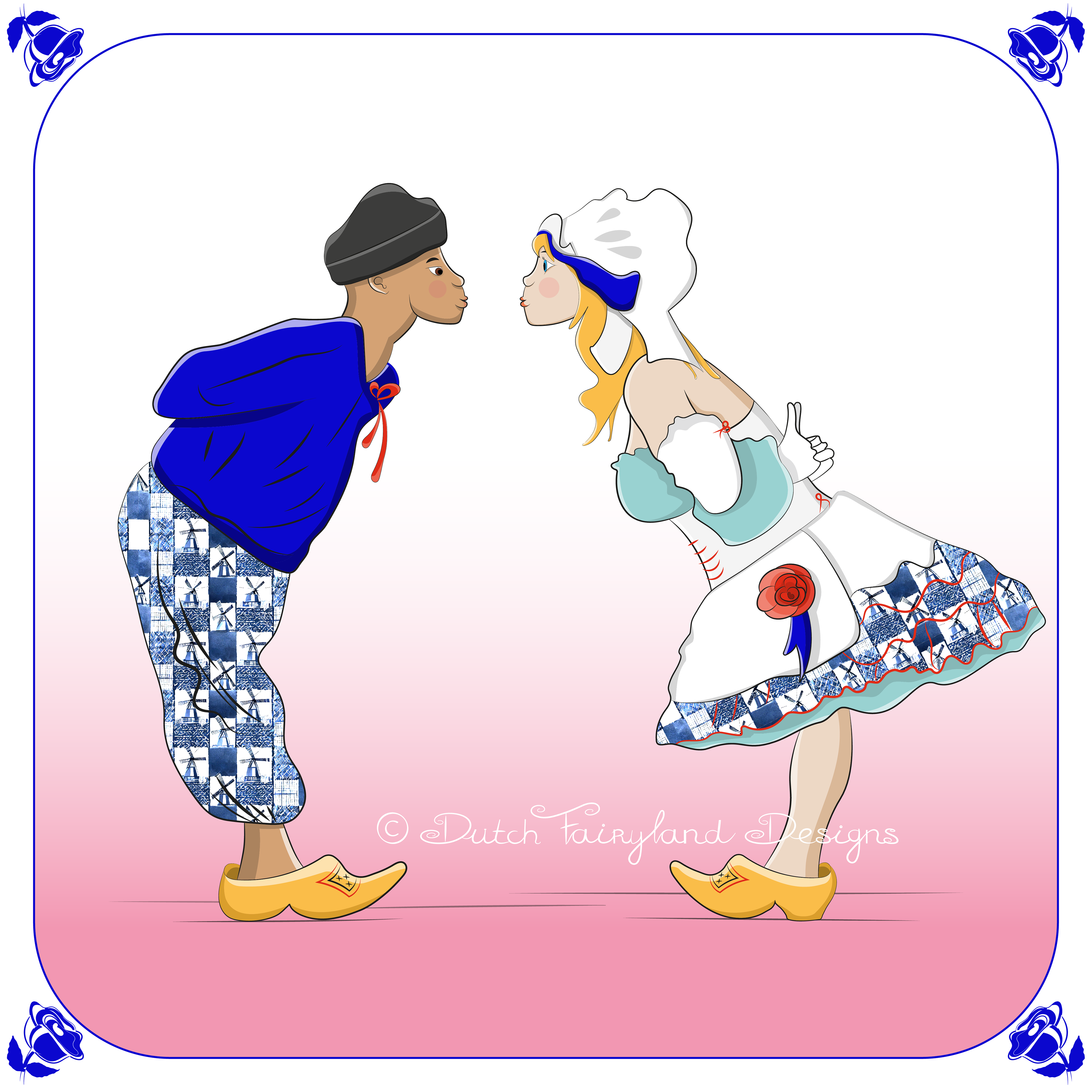 Illustraties gecreëerd om de mensen, die mij volgen en steunen op verschillende social media kanalen, een fijne Valentijnsdag te wensen. Het is mijn kijk op een welbekend traditioneel Nederlands beeldje. Ik vond het erg leuk om deze illustraties te maken en aandacht te besteden aan de traditionele klederdracht.